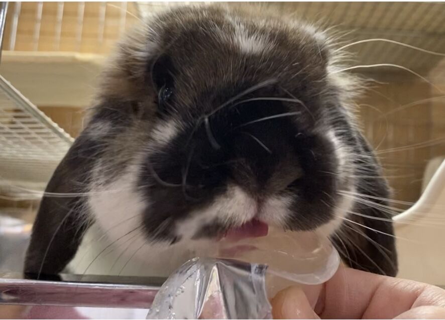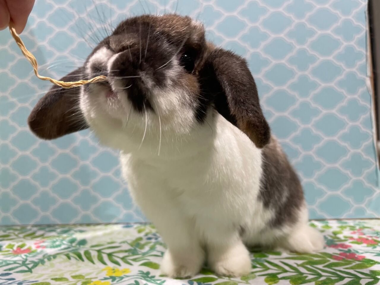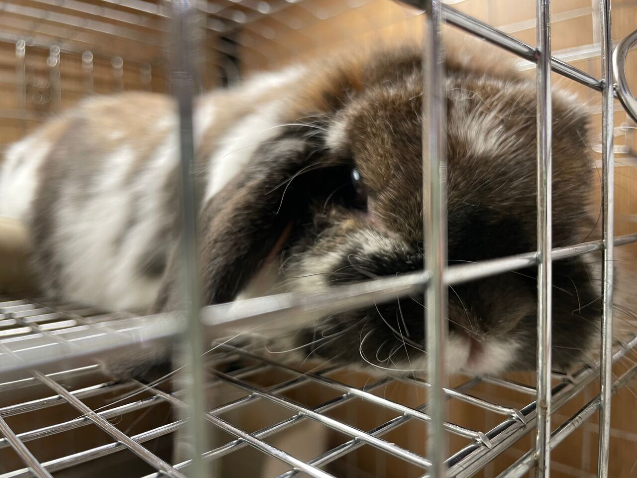 ただ沢山のお客様に声をかけてもらうことで段々となでてもらうことも好きになり、臆病な性格はどこかへ消え、移動中のキャリー内でも牧草をむしゃむしゃ食べられるくらいの大物に成長しました