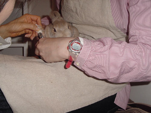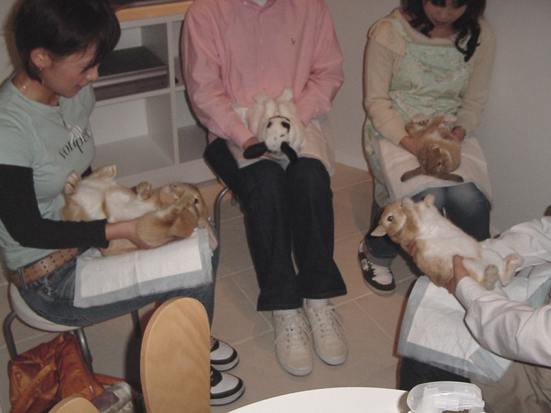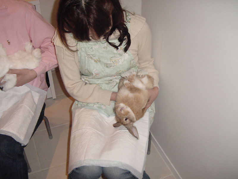 白いお腹がとっても可愛いです♪ ポイントは、うさちゃんの頭を地面と平行ぐらいに下げる事です☆