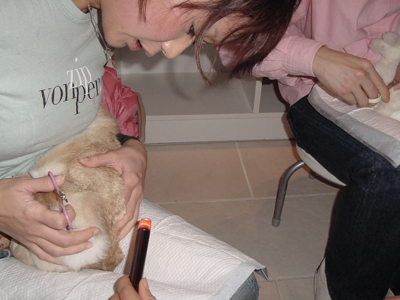 こちらはティダ君と間ママさんが爪切りに挑戦してます!! ティダ君の爪は黒っぽいので、ペンライトを使いながらやっています。 爪に意識が行き過ぎて、脇の締めが甘くならないように頑張ってくださいね^^