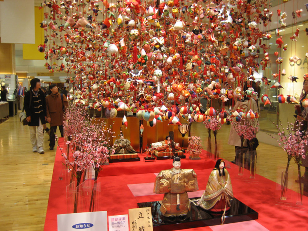 こちらの写真、お雛様ですが頭上にシャラシャラと何やら吊るし飾りが…その名も“吊るし雛”