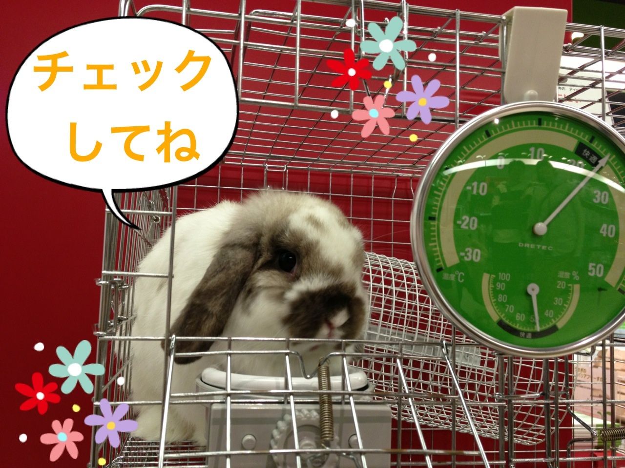 ちょっと寒いのかなー?と思って、うさちゃんケージの温湿度計を見ると、22度。