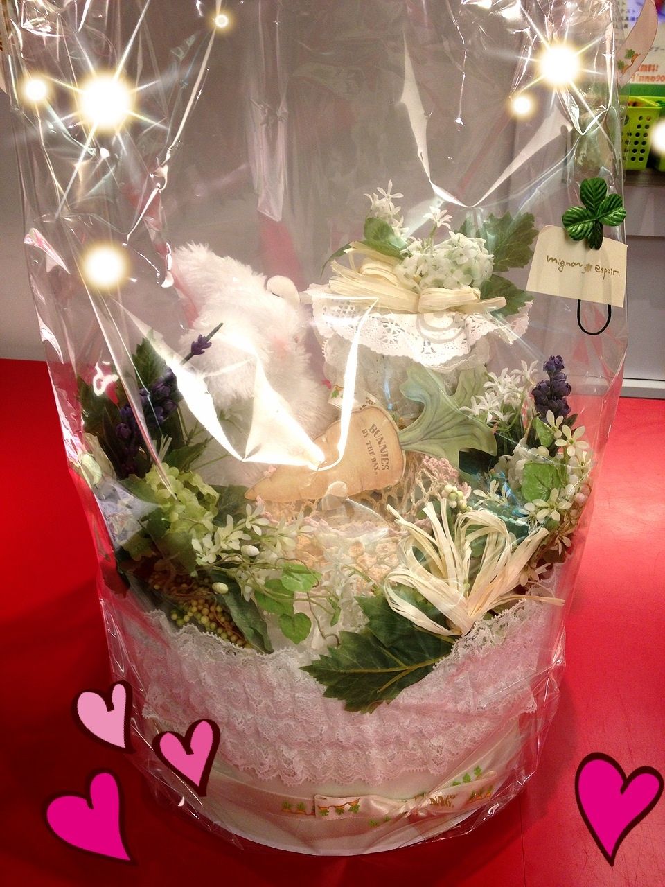 にんじんが描かれたリボンを使っていたり、かわいいうさちゃんも中に隠れてるんですよ