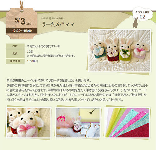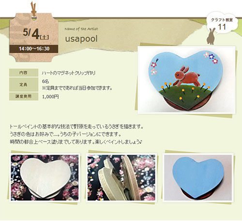 今日はうさぎアーティスト祭 クラフト教室のご案内だよ。(*゚∀゚)っ