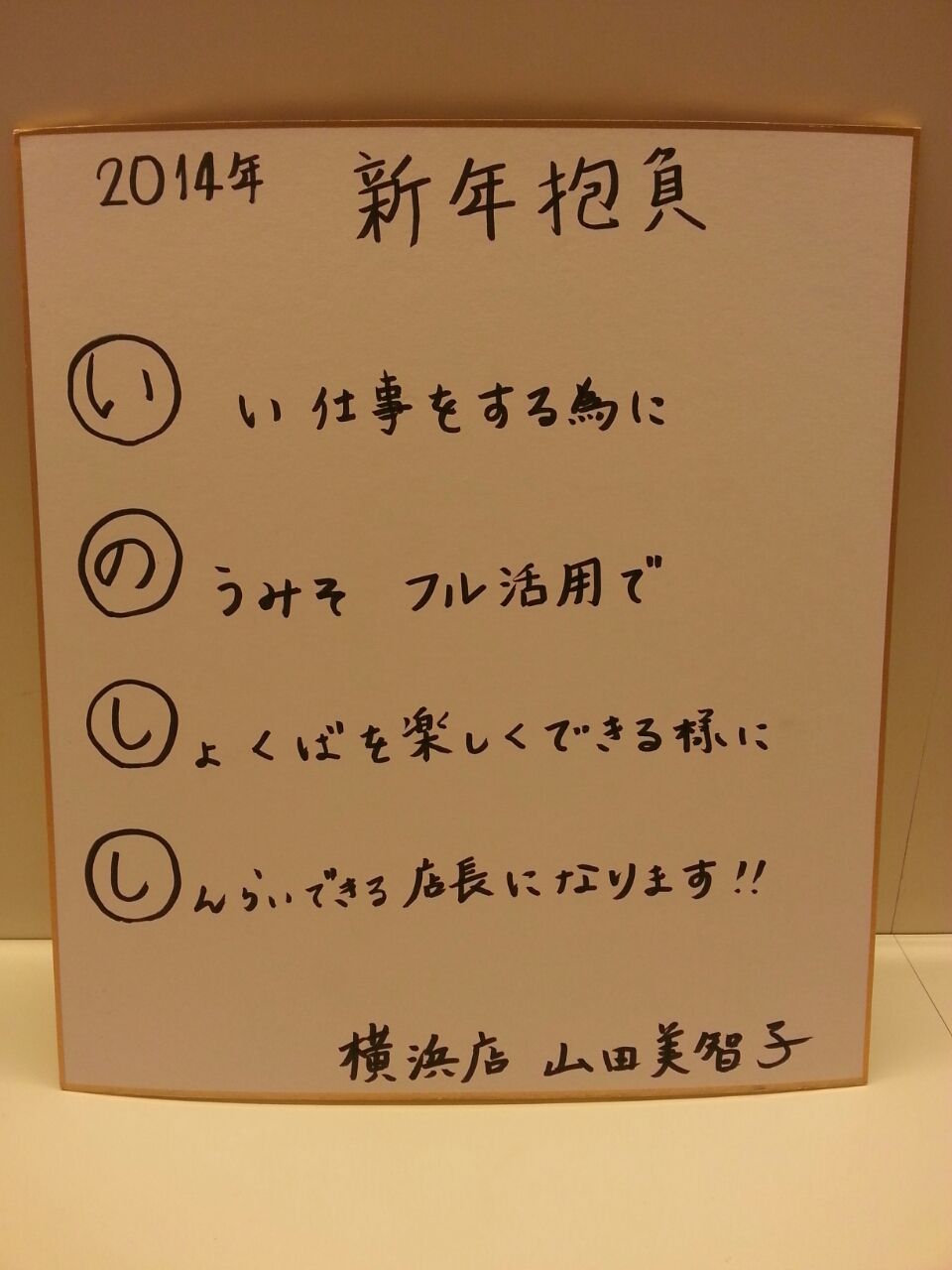 本日は、横浜店のスタッフの新年の抱負を発表します