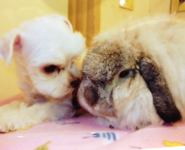 ワンコとウサコで仲良しです。