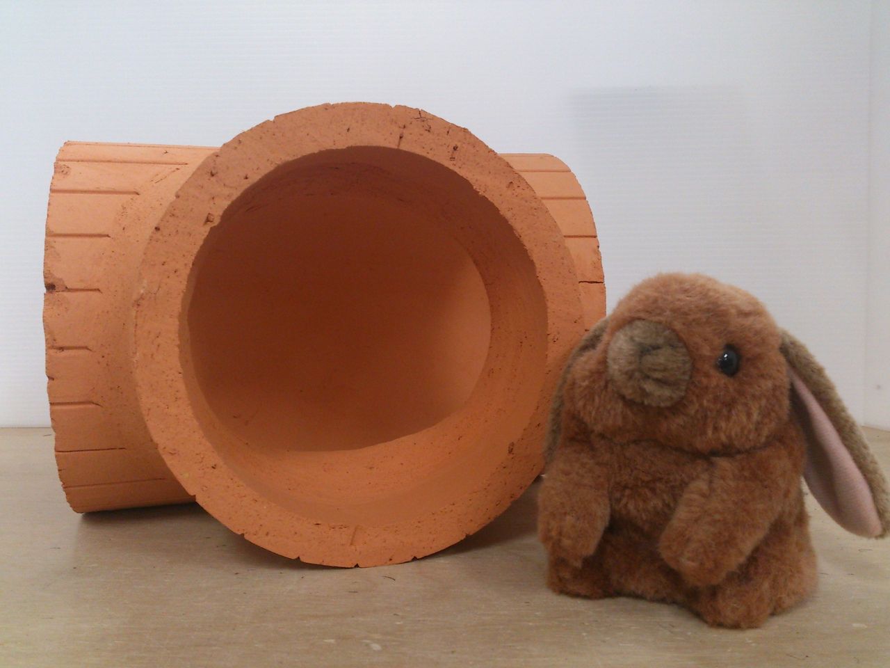 土管の表面を水でぬらすと素焼きの特性で涼しくなりますので、狭い穴好きのうさちゃんのいい遊び場&休憩所になります