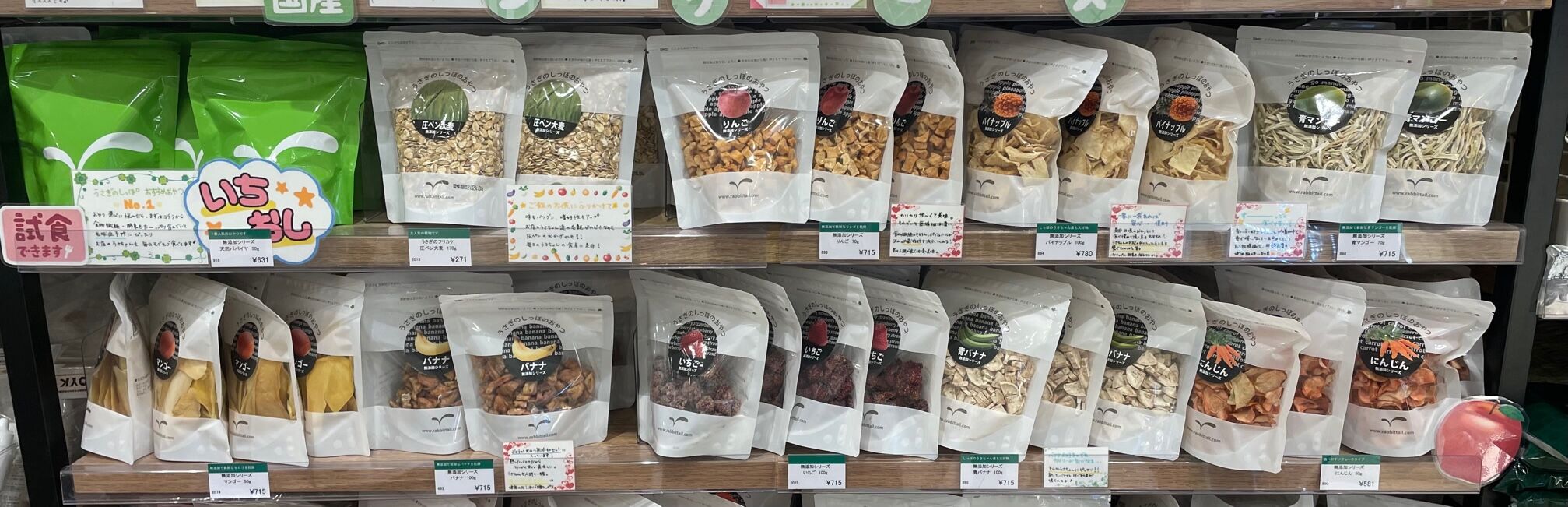 10種類のおやつが対象になり天然パパイヤ、圧ペン大麦、無添加りんご、無添加パイナップル、