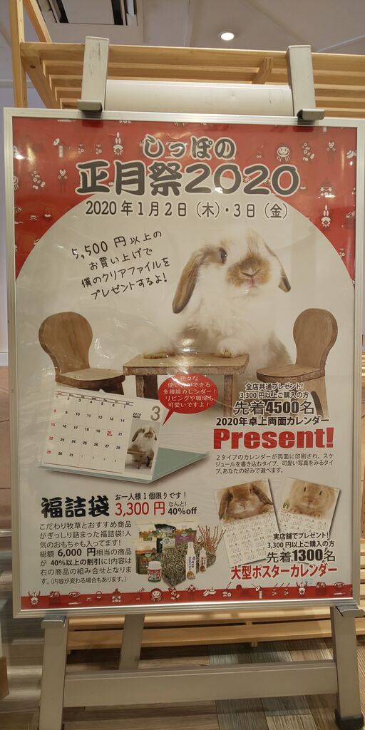 年明けからワクワクするイベントですね。ぜひぜひお正月はうさぎのしっぽの「正月祭」にお越しください!うさちゃんとスタッフ一同皆様のご来店を心よりお待ちしております!!