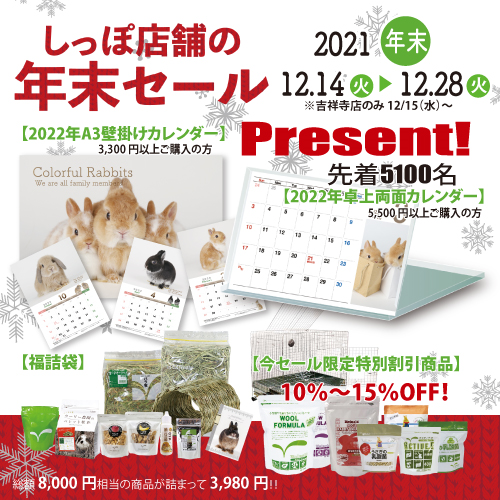 2022年も皆様の楽しいうさちゃんライフを応援して、『しっぽ店舗の正月祭』と称して、プレゼントをご用意しております。
