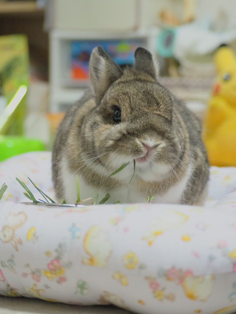 最近なでなで好きに覚醒して、お膝を出せばお膝に乗ってなでなでさせてくれたりとなでなで好きうさーずの期待の新入りです