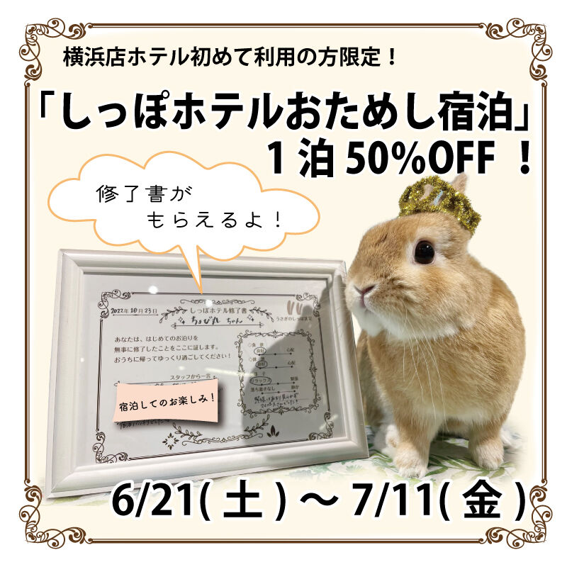 しっぽホテルをご利用いただいたことのないうさちゃん限定