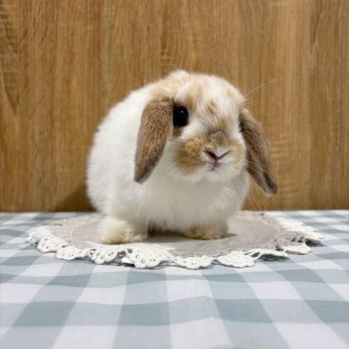 お店に来たばかりですか、懐っこさんで最近は牧草入れに住むのがマイブームらしい
