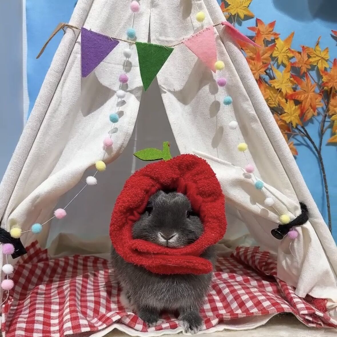 テントに住みつくりんごの妖精さんみたいでかわいいです