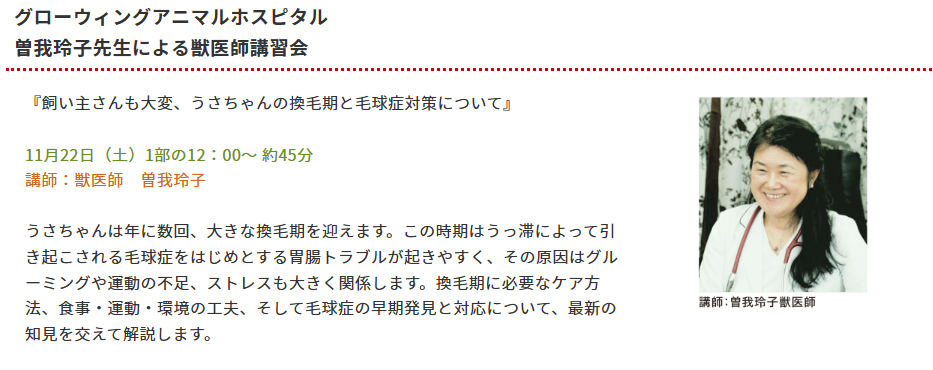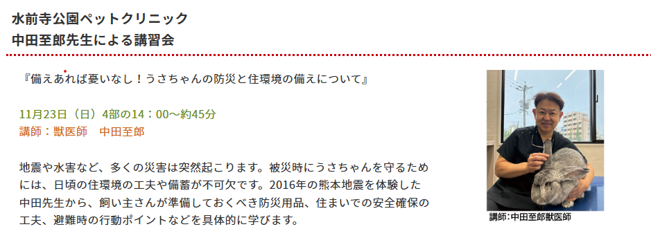 うさフェスタ2日目の講習会をご案内いたします