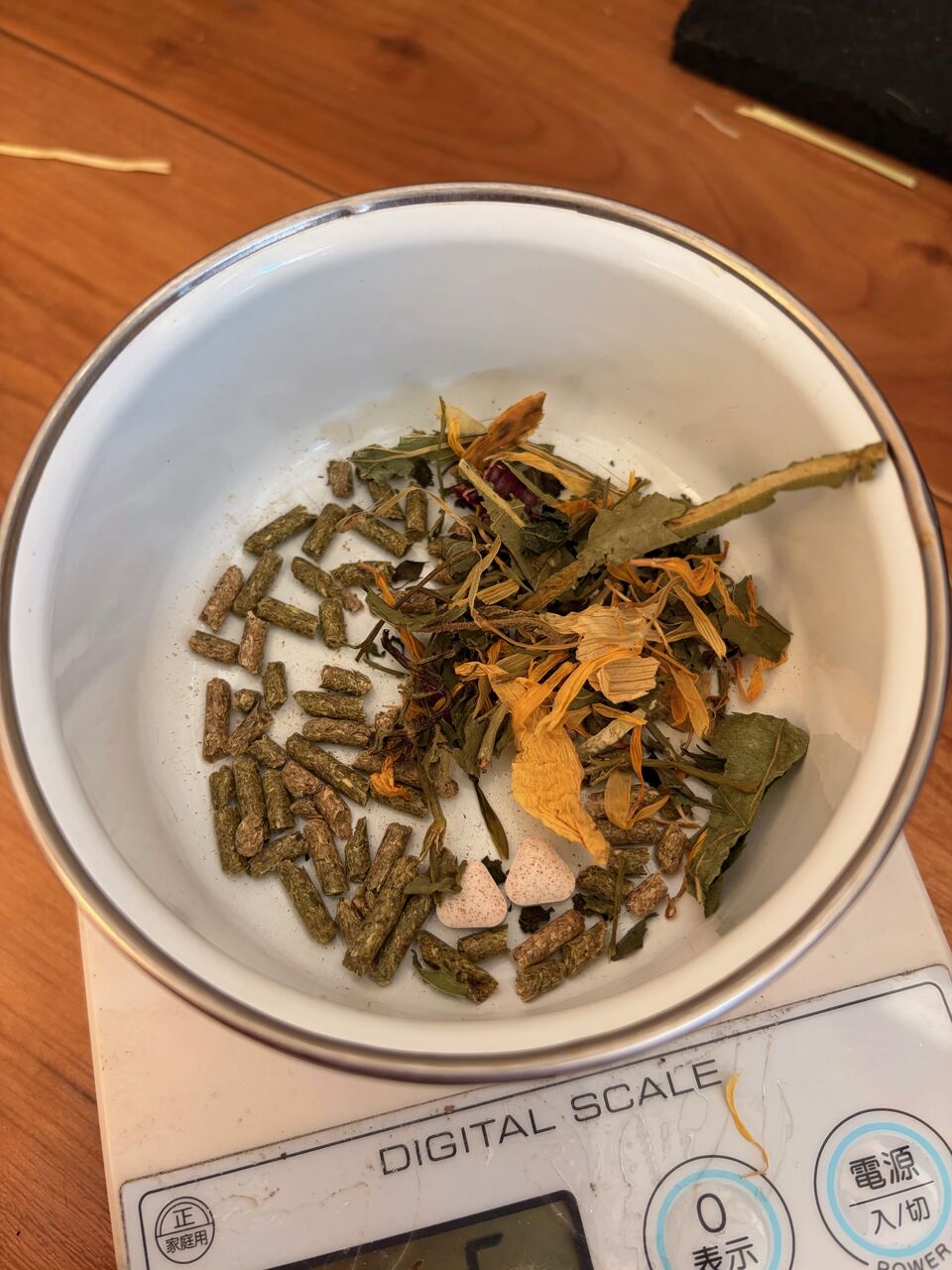 おまけに、このおやつをあげると部屋中がハーブの良い香りにつつまれて、飼い主にはリラックス効果があるような気がします・・・