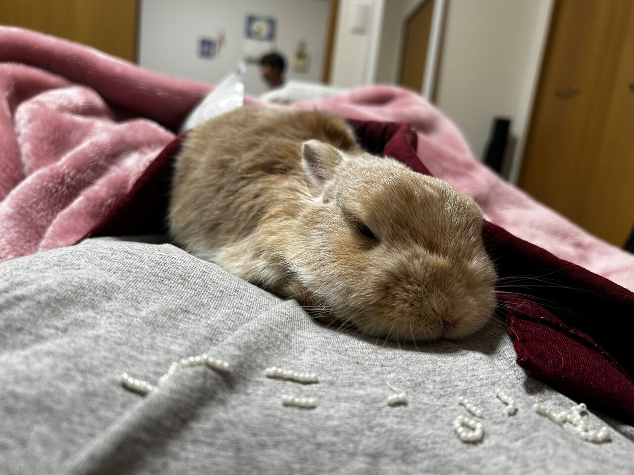 朝晩は冷えるのでうさぎさんを布団に連れ込み一緒にぬくぬく過ごしています♪