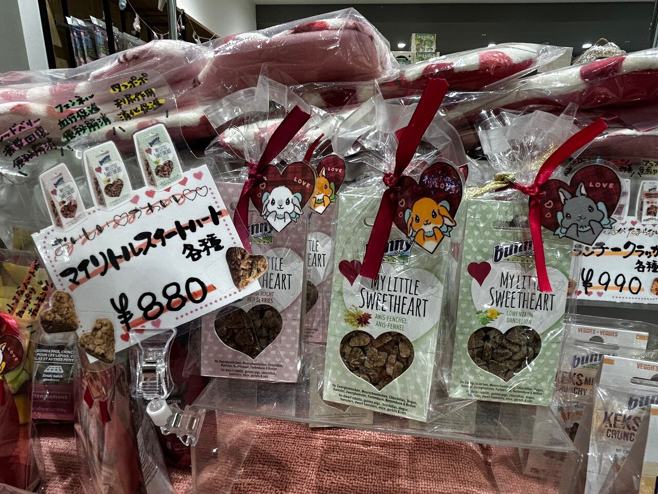 海老名店のおすすめコーナーも可愛くバレンタイン仕様にレイアウトしております